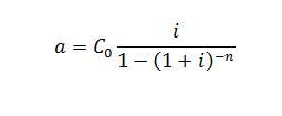 La fórmula matemática de la anualidad de este sistema es bastante sencilla, pudiendo hacer los cálculos con una hoja de cálculo como Excel. La fórmula para calcular la cuota final y los tipos de interés según el capital que se debe amortizar es: